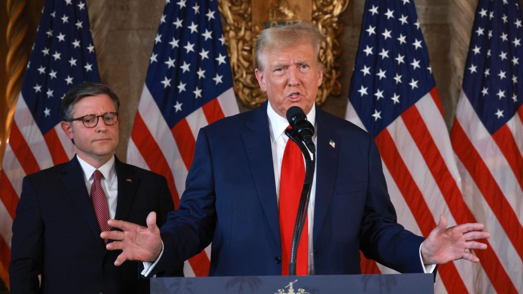 PALM BEACH, FLORIDA – APRIL 12: President Donald Trump and Speaker of the House Mike Johnson (R-LA) … [+]