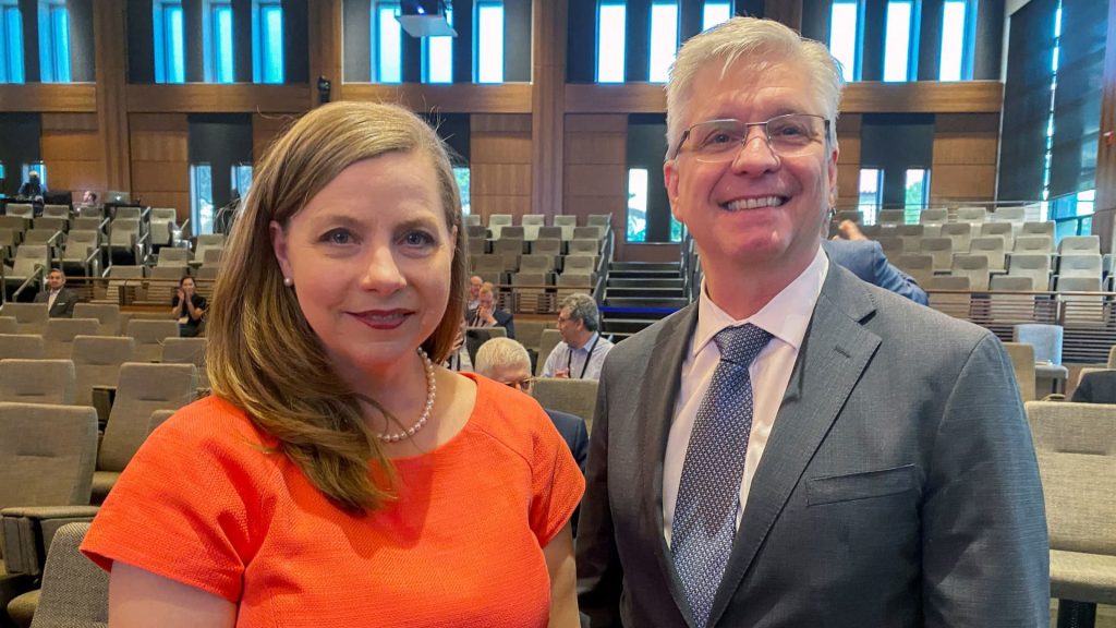Federal Reserve Governors Michelle Bowman and Christopher Waller pose for a photo, during a break at a conference on monetary policy at Stanford University’s Hoover Institution, in Palo Alto, California, U.S. May 6, 2022. Picture taken May 6, 2022.